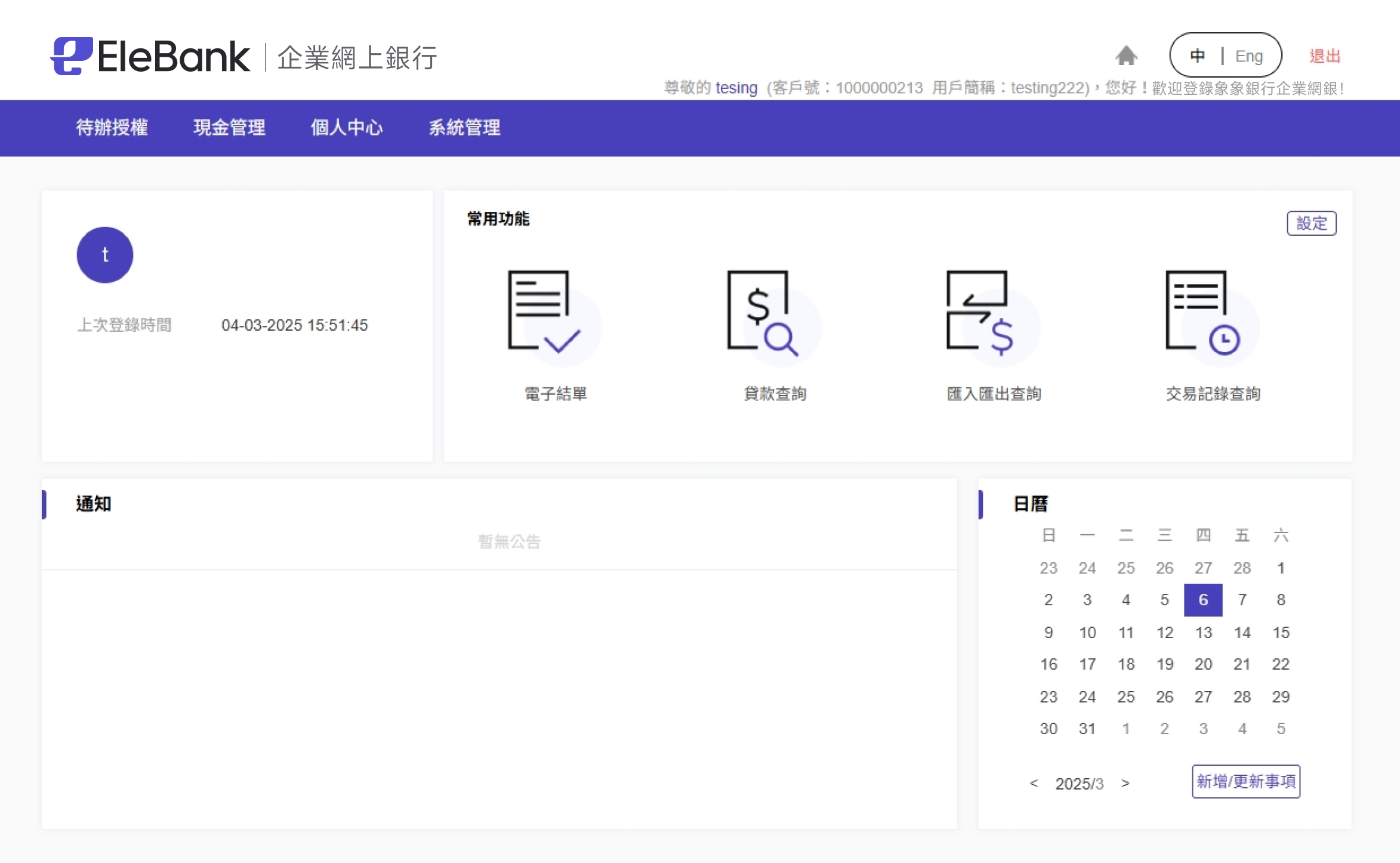 成功登入企業網銀