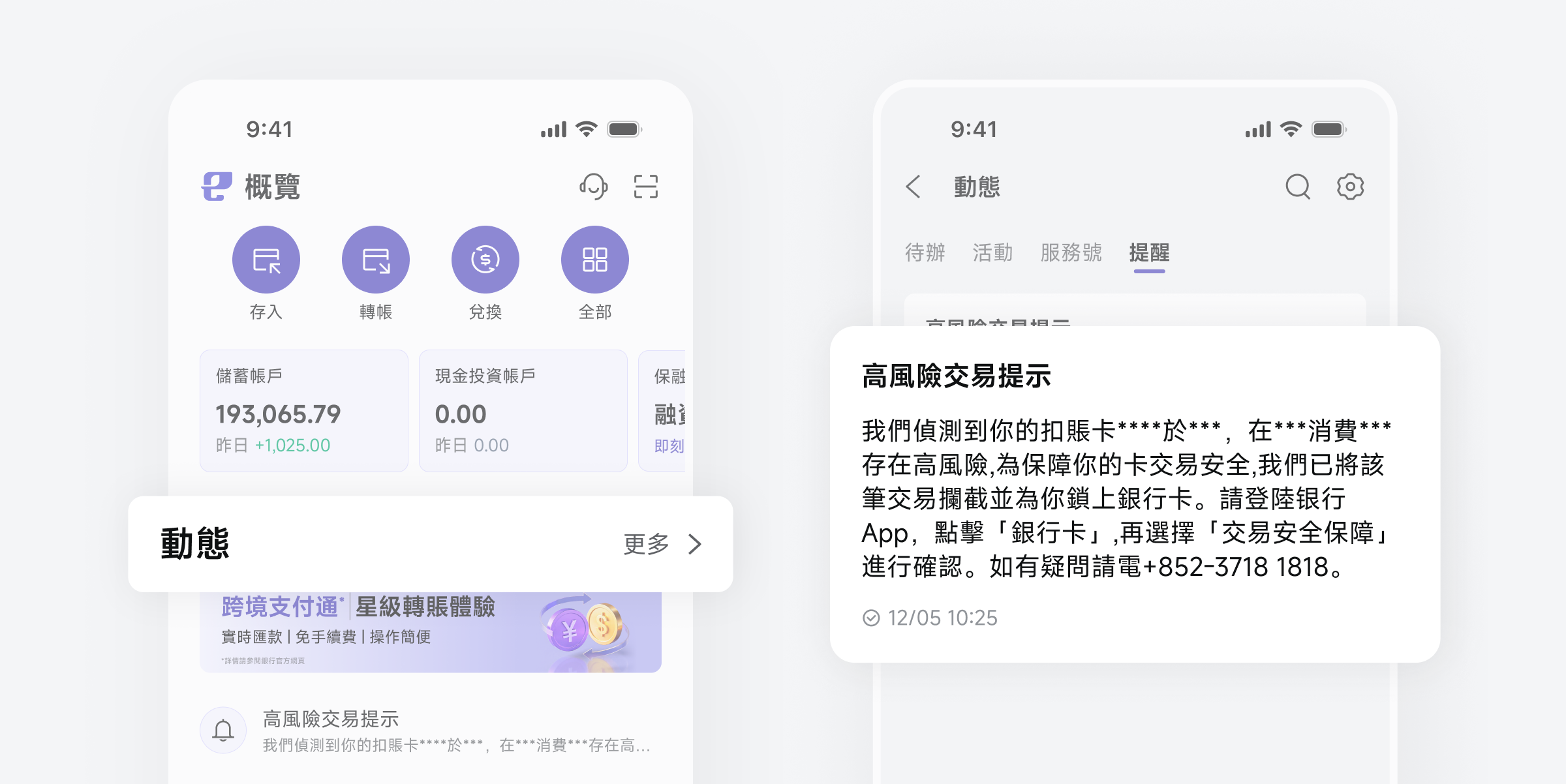 當你的銀行卡交易符合銀行設定的高風險交易標準時,銀行將為你自動拒絕該筆交易,並透過 App 通知、郵件及簡訊通知到你進行確認。